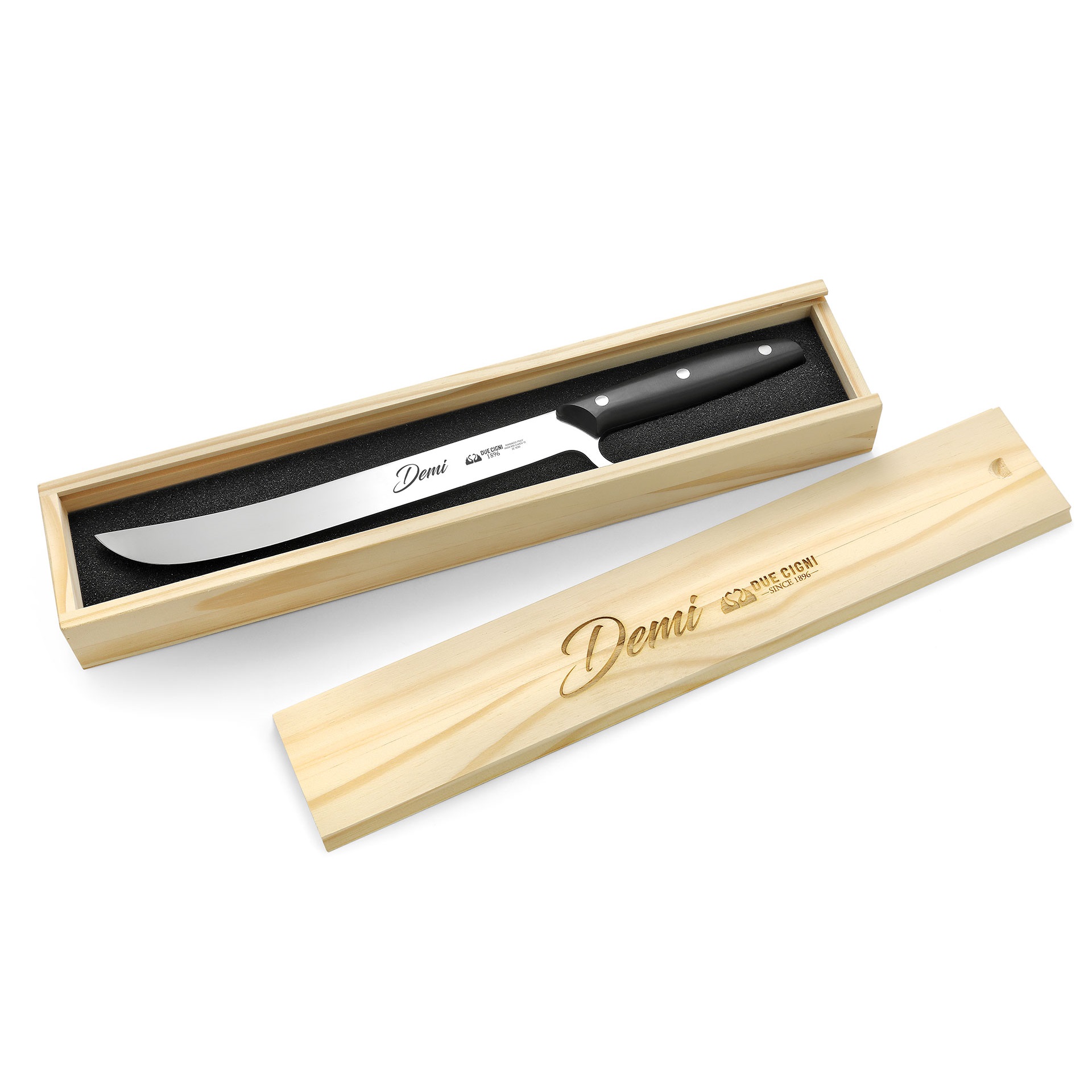 Due Cigni Sabraažimõõk on valmistatud Itaalias Maniago linnas Fox Knives poolt. Demi Sciabolino mõõga tera pikkus on 26cm ning materjaliks roostevaba teras. Koos käepidemega on pikkus 38cm. Käepide on must puit ja roostevabast terasst neetidega. Mini Sabraažimõõk on pakitud logoga puidust karpi, mille mõõdud on: pikkus 55,5cm, laius 16,5cm ja kõrgus 14cm. Karbis on mõõga hoidmise puidust alus.